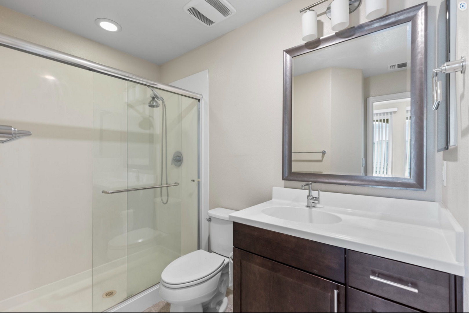 -Newer bathrooms with tiled flooring and vanity